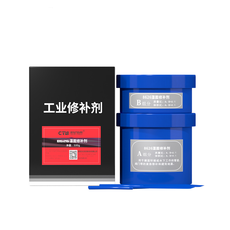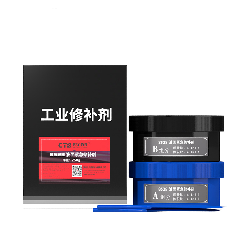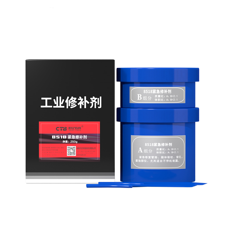 是由改性增韌樹脂和快速固化劑組成的雙組分修補材料,灰色膏狀,固化快,表面處理要求低與各種金屬及無機材料有較高的結(jié)合強度。用于搶修管路、油箱、水箱、齒輪箱裂紋、穿孔腐蝕、泄露的緊急修補與堵漏尤其適合不停機堵漏。